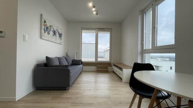 7Biuro nieruchomości Pierwsze Piętro, przedstawia kawalerkę z dużym tarasem na dachu - do wynajęcia. Mieszkanie znajduje ...